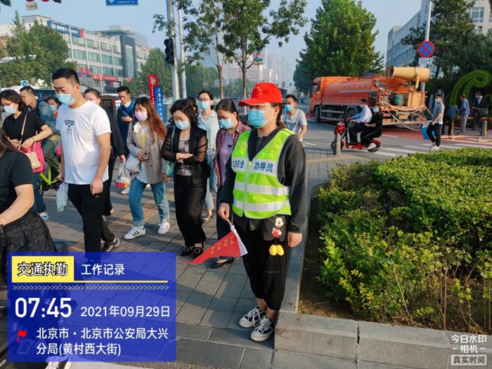早晨7到9点是上班的高峰期,黄村西大街地铁站路口来往的行人和车辆都很多,经过交警的培训指导,华腾化工团员青年欣然值守在斑马线旁,大家不断提醒行人要走斑马线,提醒车辆要礼让行人,并搀扶行走不便的大爷大妈过马路。