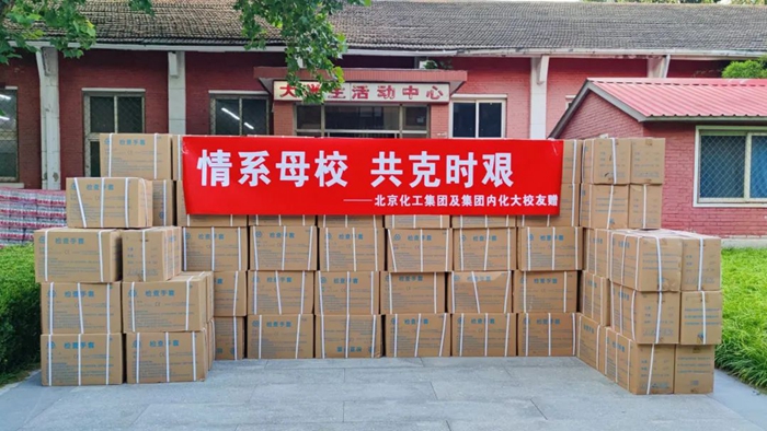 得知北京化工大学昌平校区出现疫情的消息后,北京化工集团,特别是集团内化工大学的校友们心急如焚,他们时时关注着化工大学疫情防控工作开展情况,北京化工集团及集团内校友们一致同意共同捐款购买华腾橡塑生产的雪莲牌检查手套10万副,并紧急安排专人、组织专车运送至北京化工大学。化工大学相关领导和部门对北京化工集团及集团内校友们在战疫关键时刻雪中送炭之举表示衷心感谢。