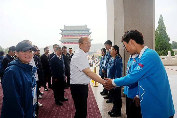 5月23日,北京化工集团党委常委、副总经理韩宝海一行来到毛主席纪念堂,看望慰问开展志愿服务的技师学院青年志愿者。