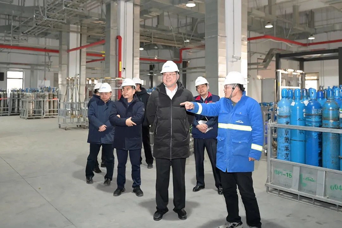 陈宇首先走进北普工厂,深入生产一线了解气体保供情况 。陈宇详细查看了北普工厂灌装生产线运行情况、氧气瓶安全装卸、运输和各类气瓶的存储情况。详细了解了节日期间首都各大医院需求情况及保障措施。叮嘱一线干部职工要始终把安全生产放在首位,坚决扛起节日期间安全生产主体责任,同时要加强调度,为首都各大医院提供及时便捷的保障服务,确保首都市民度过一个安全健康的春节。